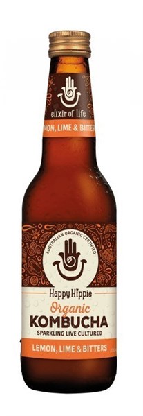 HAPPY HIPPIE ORGANIC KOMBUCHA LEMON LIME BITTERS 330ML